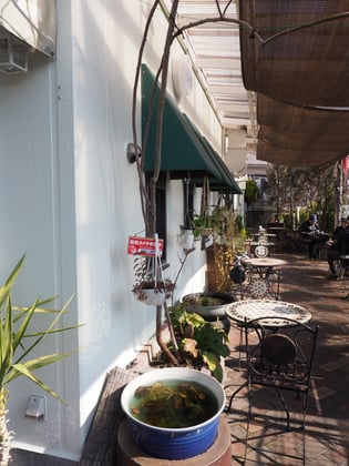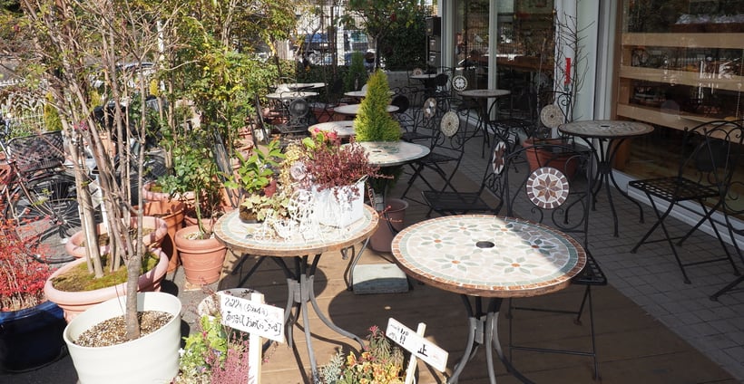 天気のいい日はテラス席で購入いただいたパンを召し上がれます。